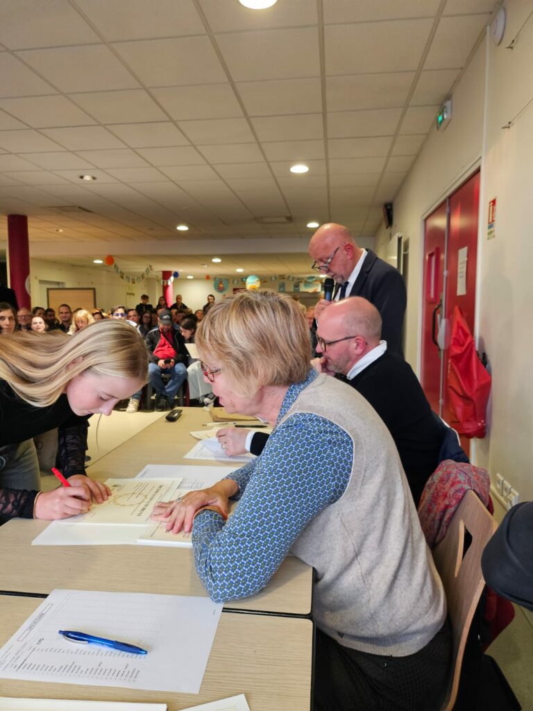 Les diplômes du DNB on été remis aux anciens élèves de 3ème durant la cérémonie qui s’est tenu le Vendredi 17 octobre 2025 à partir de 18h30 en Scène Nort. Après quelques mots de Monsieur Traguet, le chef d’établissement, les anciens collégiens, leur famille et les équipes pédagogiques ont pu partager ensemble un moment festif et convivial autour d’un verre et ainsi féliciter la réussite des élèves.