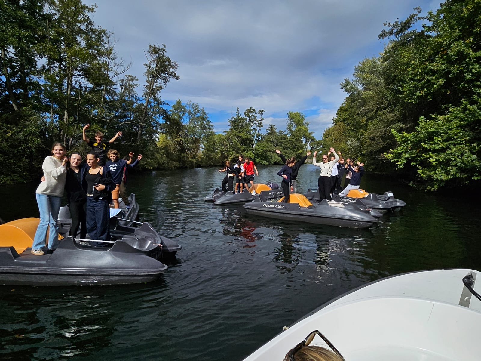 Pour leur journée de cohésion, les 3èmes Direct News, accompagnés par Madame Rana, professeure documentaliste et Monsieur Arrigo, professeur de français, sont allés faire une séance d’escalade au Climb-Up de Caen le matin. Ils ont ensuite mangé un pique-nique (sous la pluie) avant de s’aventurer sur l’Orne à bord de pédalos. Objectif réussi pour les 3è D qui ont pu créer des liens et renforcer l’esprit d’équipe pour aborder l’année d’une bonne façon ! Merci aux parents volontaires pour le covoiturage des élèves !