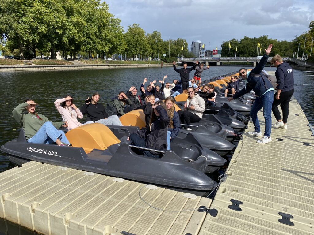 Pour leur journée de cohésion, les 3èmes Direct News, accompagnés par Madame Rana, professeure documentaliste et Monsieur Arrigo, professeur de français, sont allés faire une séance d’escalade au Climb-Up de Caen le matin. Ils ont ensuite mangé un pique-nique (sous la pluie) avant de s’aventurer sur l’Orne à bord de pédalos. Objectif réussi pour les 3è D qui ont pu créer des liens et renforcer l’esprit d’équipe pour aborder l’année d’une bonne façon ! Merci aux parents volontaires pour le covoiturage des élèves !