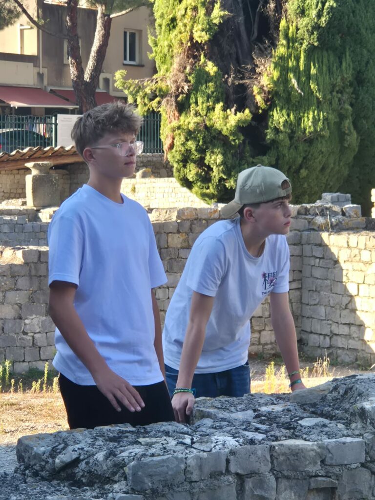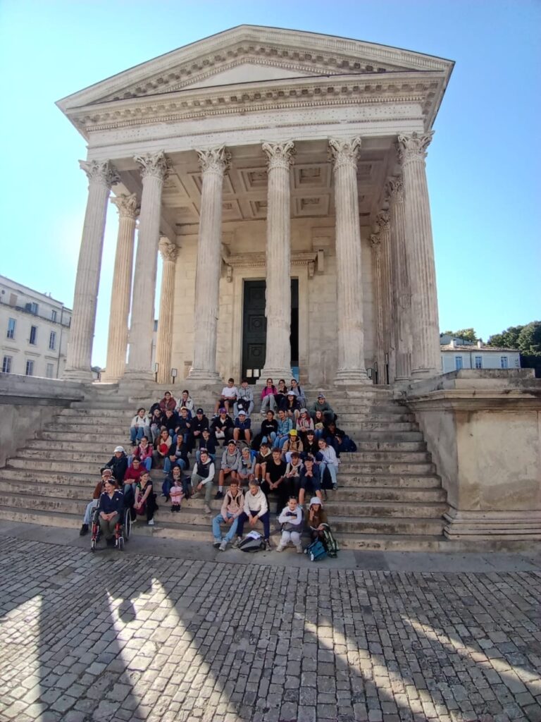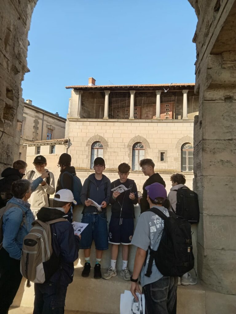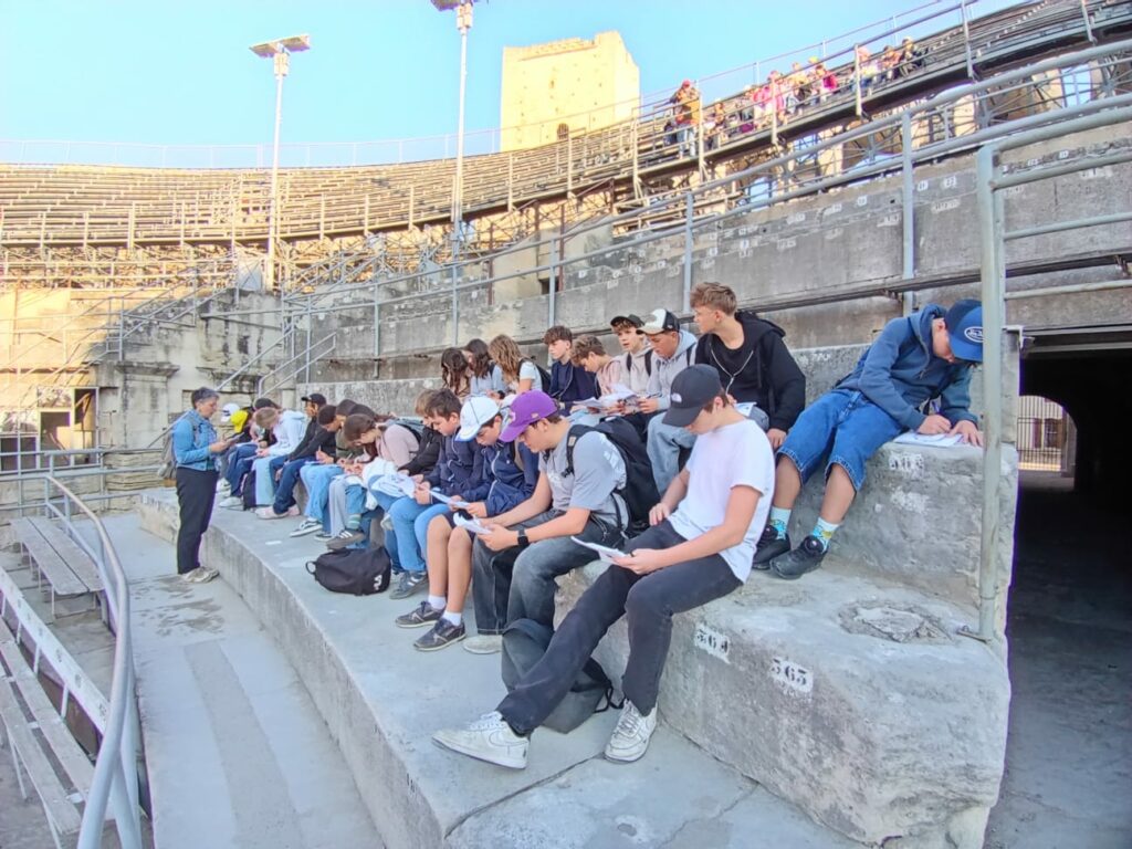 En octobre, les élèves latinistes de 4ème, ainsi que certains 3èmes n’étant pas allés à Rome l’année dernière, sont partis 3 jours dans la région de Nîmes. Ils étaient accompagnés par Mme Fortier et Mme Le Texier, leurs professeures de latin, M. Simon, professeur de musique et par Mme Bazin de la vie scolaire au collège. Ils ont dormi et mangé dans l’auberge de jeunesse Bagatelle à Avignon, qui leur a préparé des pique-niques chaque jour. Pendant ces trois journées bien remplies, le groupe a visité de nombreux monuments historiques de la région : une domus de Vaison la Romaine, un théâtre et l’amphithéâtre d’Avignon, les thermes de Constantin, les arènes de Nîmes et d’Arles ainsi que la Maison Carrée. Pour clôturer leur voyage, ils ont visité le Pont du Gard. Les élèves sont rentrés ravis et souhaitent dire un grand merci à leurs professeurs pour l’organisation de ce voyage !